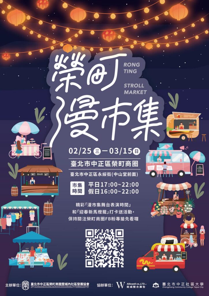 感謝觀傳局局長親自蒞臨榮町商圈關心與指導 今年市長提出「無煙台北」的願景,局長也特別前來拜託理事長,希望在燈節期間,商圈夥伴能一同響應無煙行動 透過大家的共同努力,讓市容更加整潔美觀,不僅提升逛街與觀展的舒適度,也為台北的國際觀光形象加分 【榮町燈節・漫市集】 2/25 – 3/15 現場不只有好吃好喝的特色市集, 還有中正社大帶來的精彩演出,以及流行歌曲藝人輪番登場 誠摯邀請大家一起來榮町,感受燈節的熱鬧氛圍, 共同打造友善、無煙、充滿魅力的城市風景。 榮町講堂 老城新潮系列02【我最重要的生活—以味為經緯:朱振藩的城中記憶】